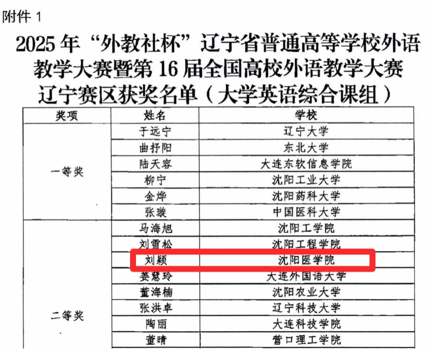 2025年“外教社杯”辽宁省普通高等学校外语教学大赛(大学英语组)暨第十六届全国高校外语教学大赛辽宁赛区决赛已经圆满落幕。经过激烈角逐,我院教师刘颖、李利在比赛中表现优异,分别荣获综合组二等奖和视听说组三等奖。